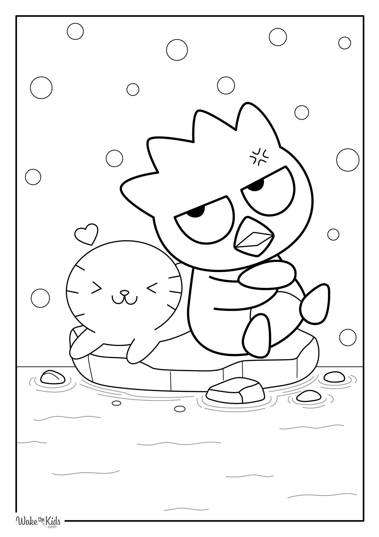Badtz Maru, Sanrio’s spiky-haired rebel, appears with his signature attitude across pages designed for ages 5–9, featuring strong outlines, open shapes, and simple angles that support steady coloring and character detail with crayons or pencils—balancing creativity with control.