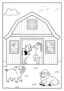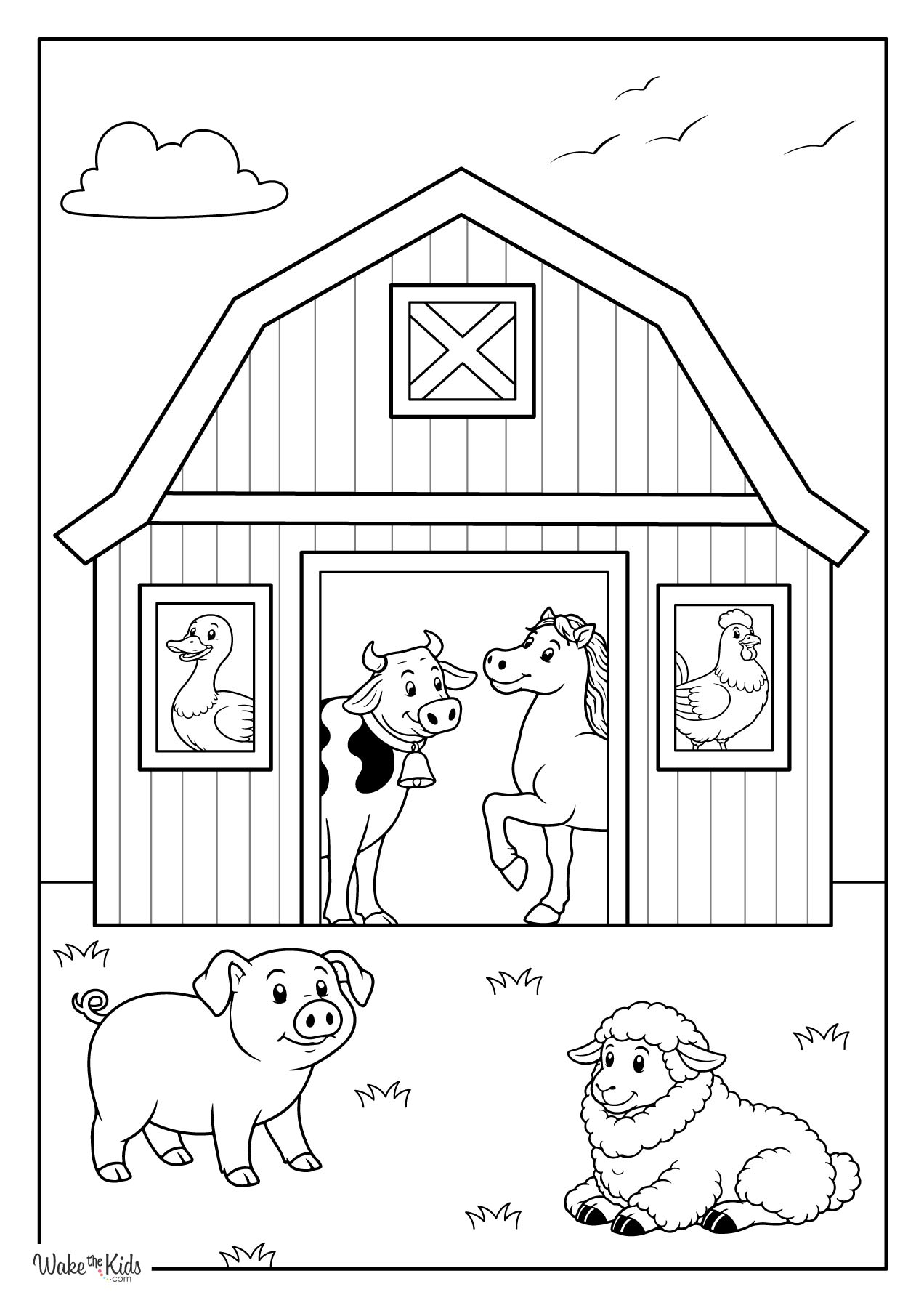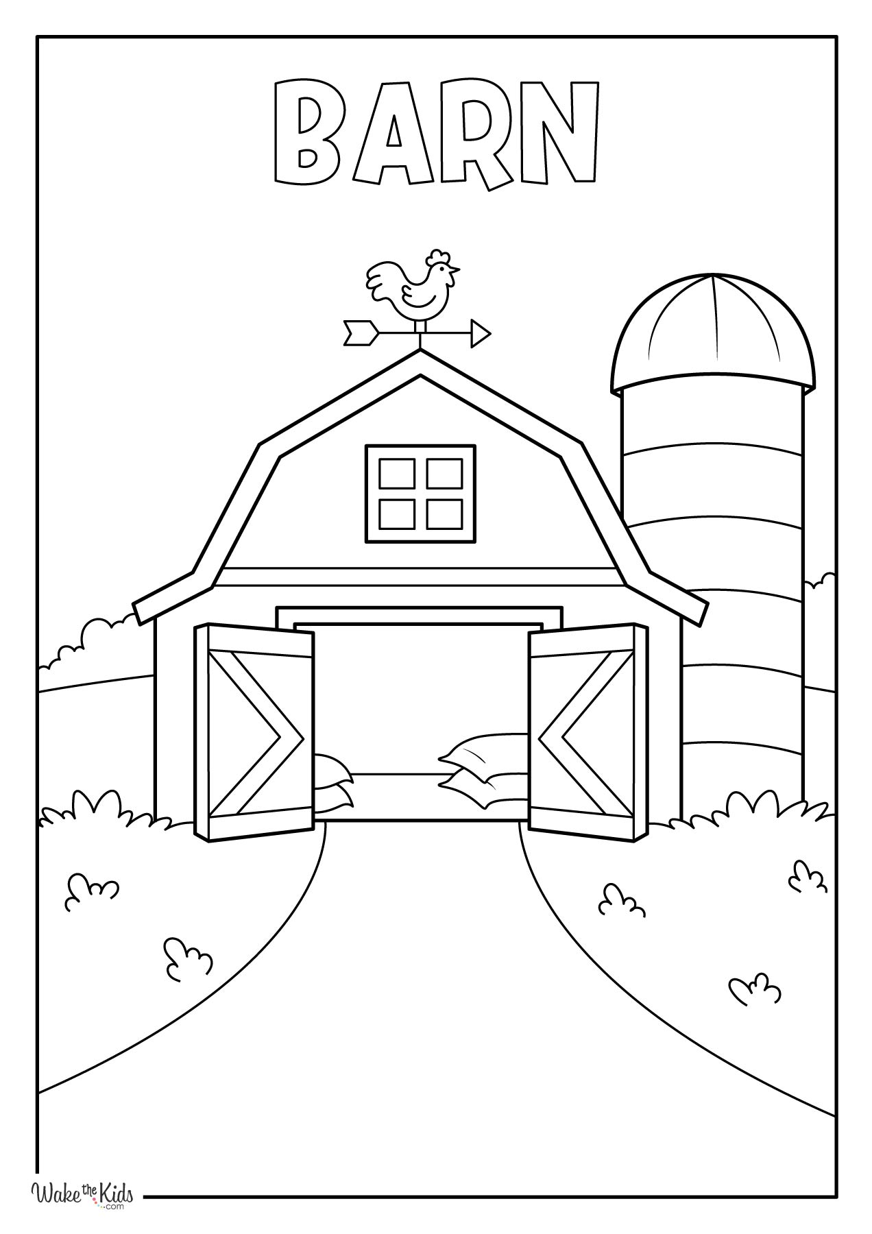A barn is a functional farm building associated with daily rural work and storage. Designed for ages 6–9, this set supports controlled coloring, line accuracy, and steady pressure use, making it suitable for working with defined shapes and structured areas using crayons or colored pencils.