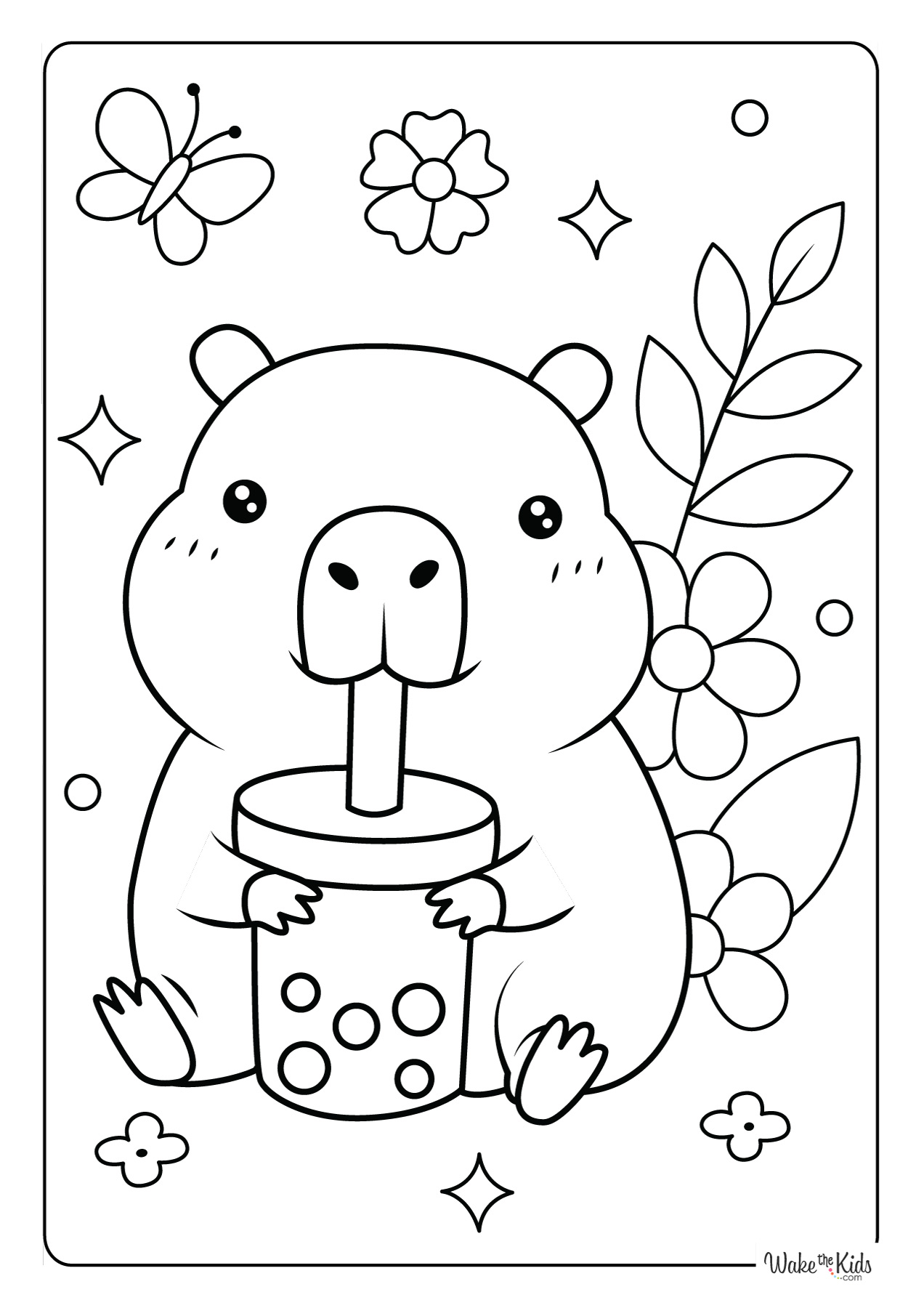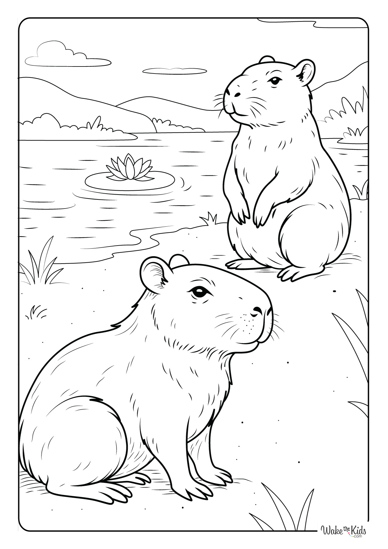 Each page mirrors the quiet grace of the capybara, offering a relaxed and focused coloring experience.