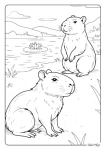 Capybaras are gentle, water-loving animals known for their peaceful and friendly nature. This set lets ages 4–8 explore natural tones and smooth color blends while filling rounded shapes and clean outlines. Wide spaces make each page simple to color neatly with crayons or pencils.