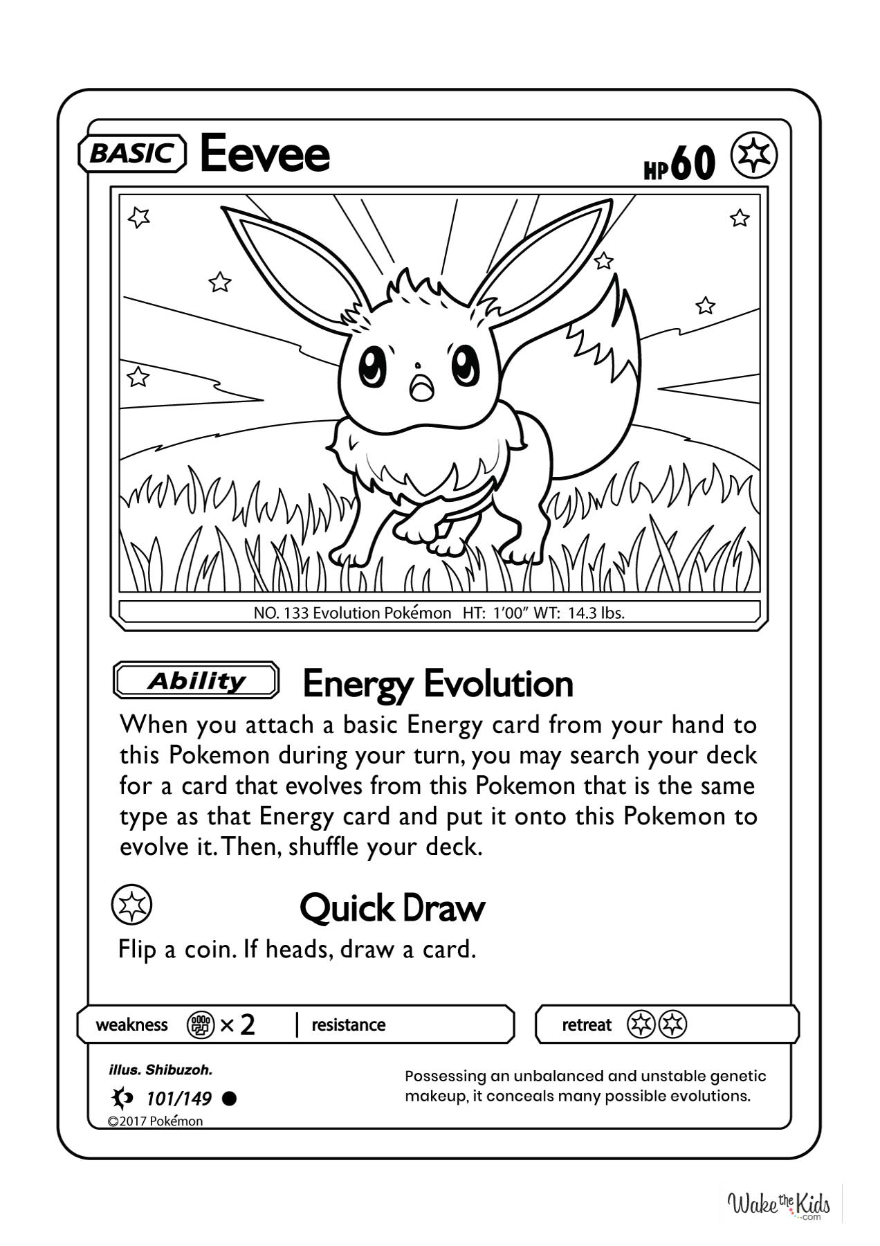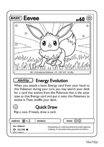 A calm, adaptable creature inspired by trading card designs shows charm and growth. Kids can use brown, cream, and light pink for a soft look. Coloring builds focus and patience while exploring gentle tones.