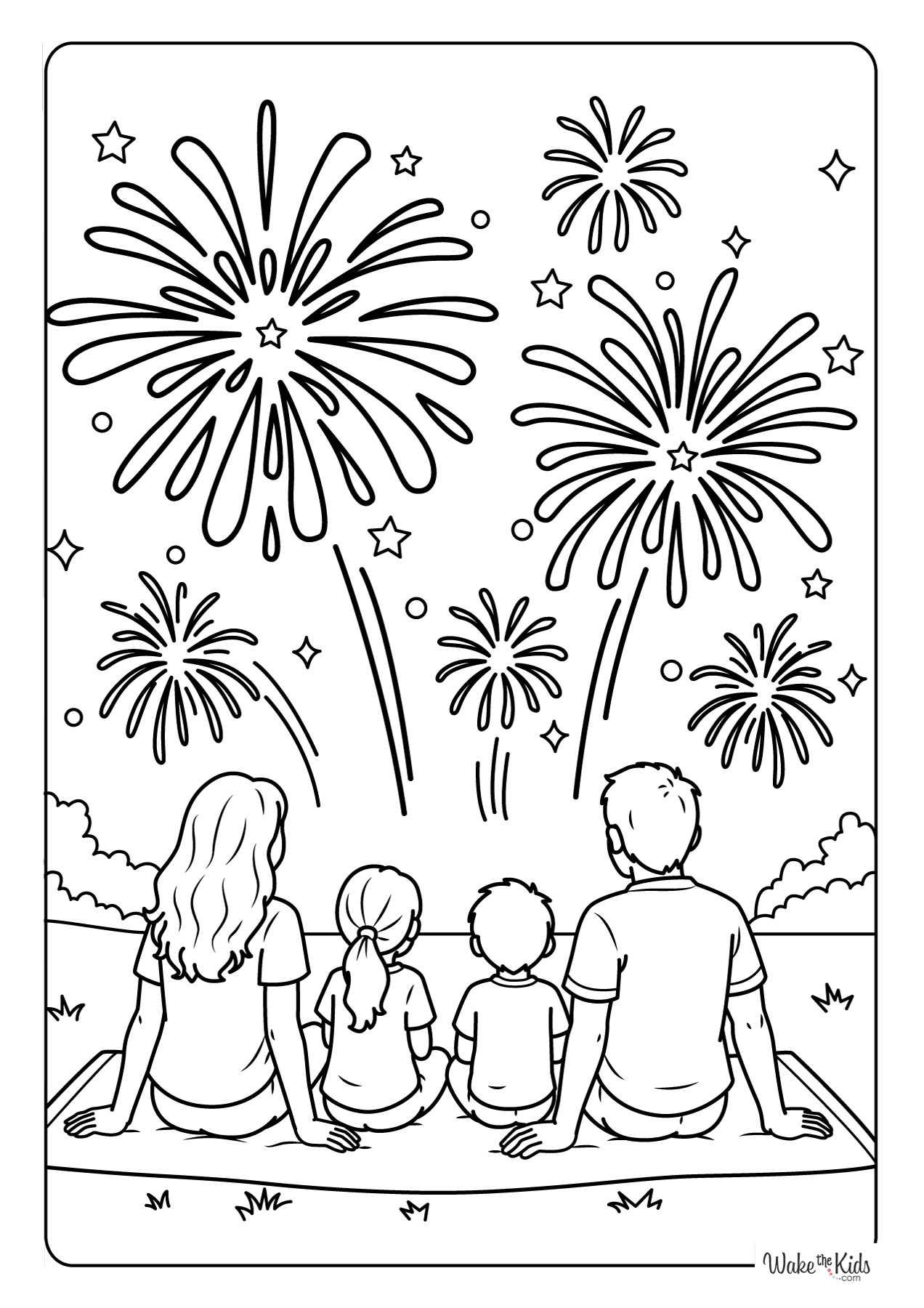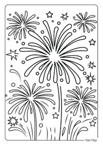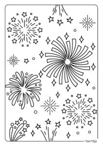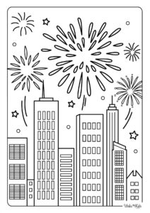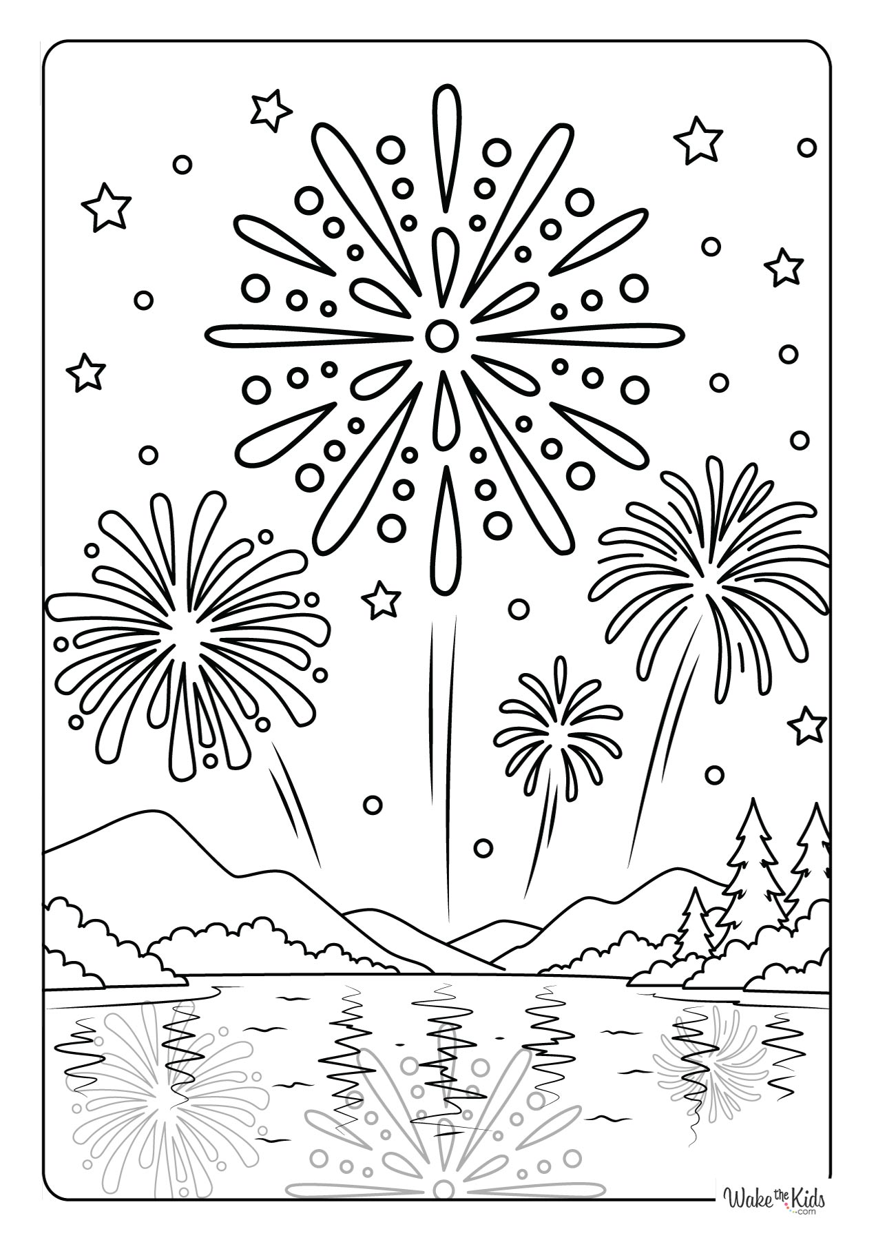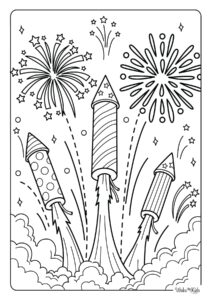 Fireworks light up the sky in brilliant colors during celebrations, creating excitement and wonder for everyone watching. On this page, children can explore different bursts, rockets, and festive patterns with designs suited for ages 4–10, ranging from simple outlines to more detailed scenes. Young colorists can start with easy displays and move on to fuller, more intricate compositions.