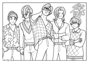 The core group at the center of the series drives most of the storyline, with their personalities, roles, and interactions setting the overall tone. Their familiar appearances translate into coloring pages with steady line work and simple contours, keeping scenes clear without crowded detail.