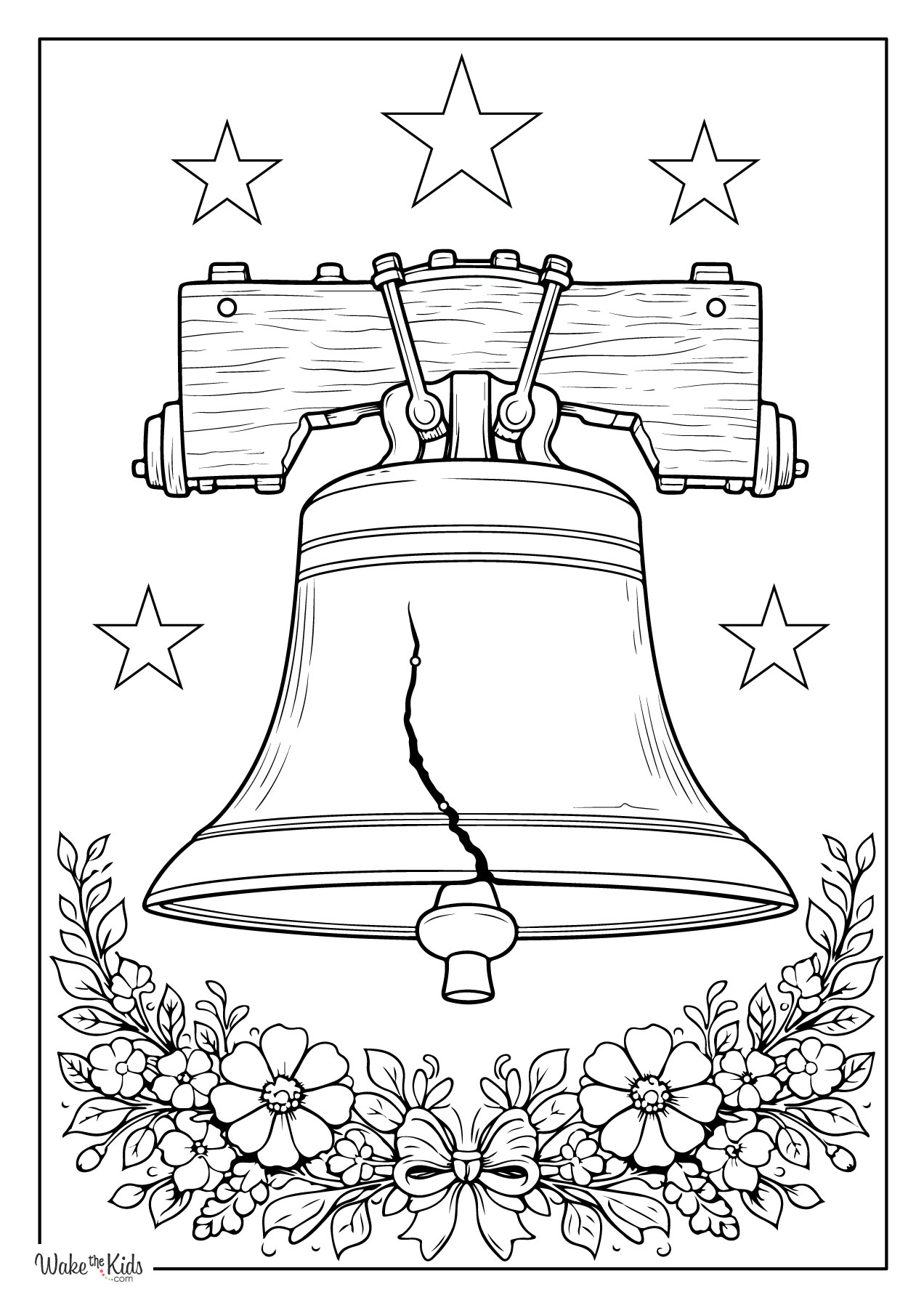 A historic bronze bell with a wide curved body and a well-known crack has long been connected with the story of American independence. These sheets are suitable for ages 5–9 and encourage learners to practice controlled hand movement as they trace rounded edges and follow the raised lettering around the surface. The page layouts place the bell as the main feature with clear surrounding space so the shape and engraved details remain easy to work through with common classroom coloring tools.
