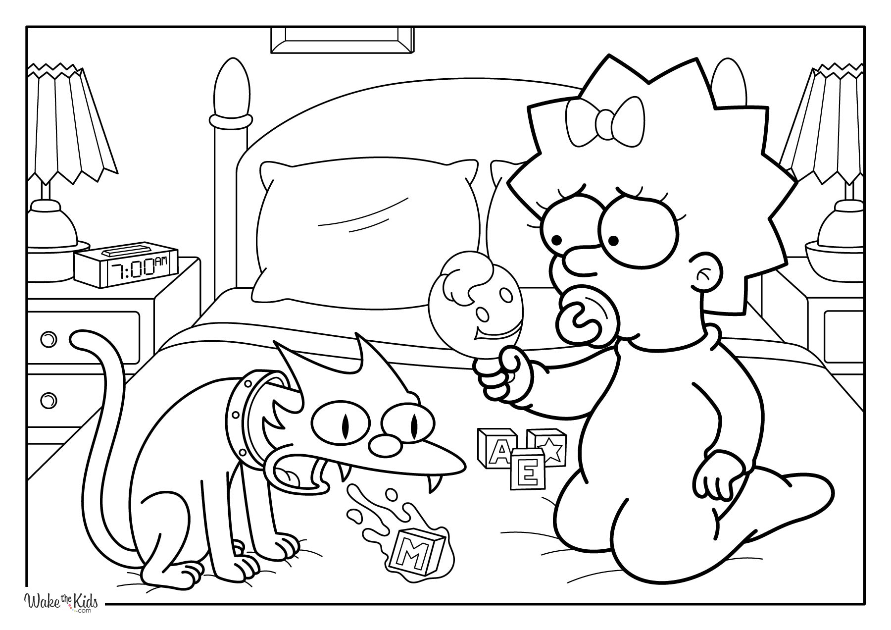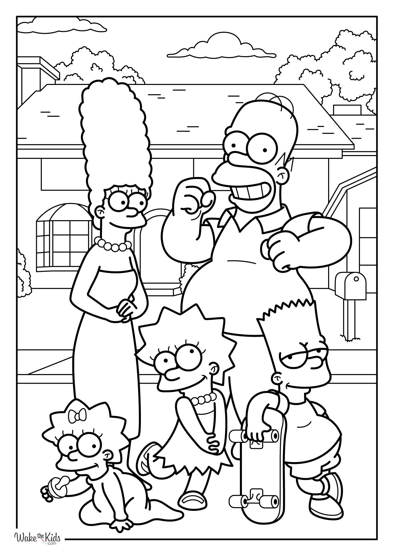 The Simpsons is an American animated sitcom, and this set presents its everyday scenes in straightforward outlines that make coloring simple and relaxed. The designs leave open room around characters and objects so each fill stays clean and easy to manage.